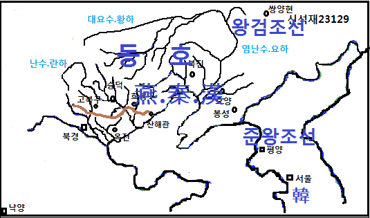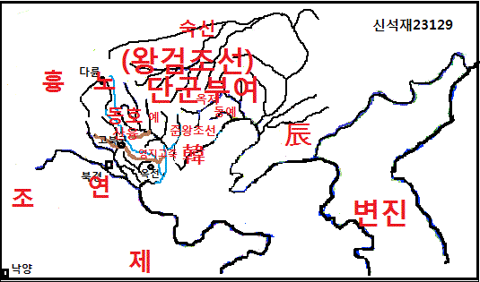 궁극적으로 시끄러운 , , , 기원전 2333년경에 죽은 왕검조선. 강 유역은 아래와 같이 현대의 란 강의 상류 동쪽 지역일 수 있습니다.