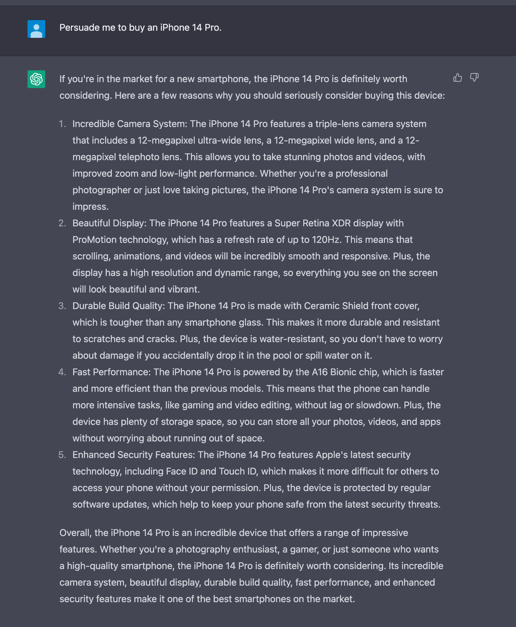 예를 들어 iPhone 14 Pro를 구입하도록 설득합니다. 또는 시도하십시오.