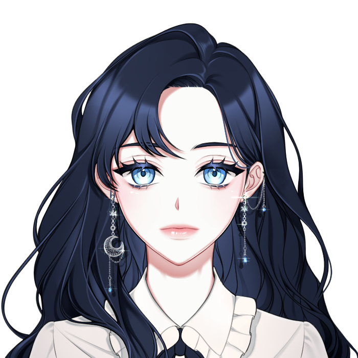 – 날개뼈보다 약간 긴 진한 파란색(남색) 머리카락
