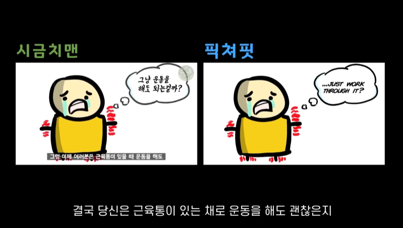 과연 영상의 내용을 보면 아래와 같이 구독자 118만 명을 보유한 유명 해외 유튜버 픽처핏의 이미지 흔적이 남아있고, 영문 폰트만 한글로 변경되었습니다. 여기에 있는 내용 중 일부는 해석하기 어려웠다고 하며, 자신의 주장을 출처로 반박하는 글을 작성했습니다.