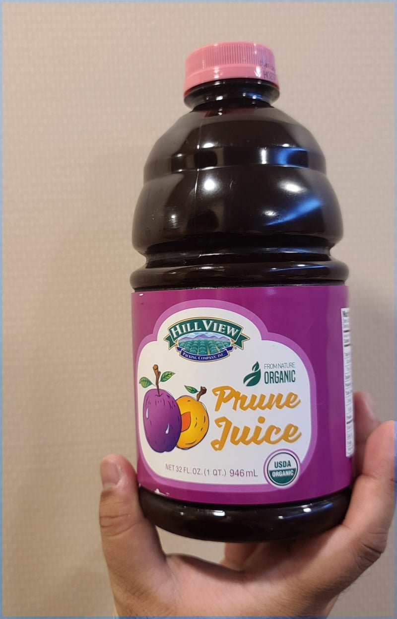 예전에는 화장실을 많이 갔는데 요즘은… 별로 개운하지 않아서 식이섬유가 풍부한 유기농 푸룬주스를 먹어보기로 했어요.