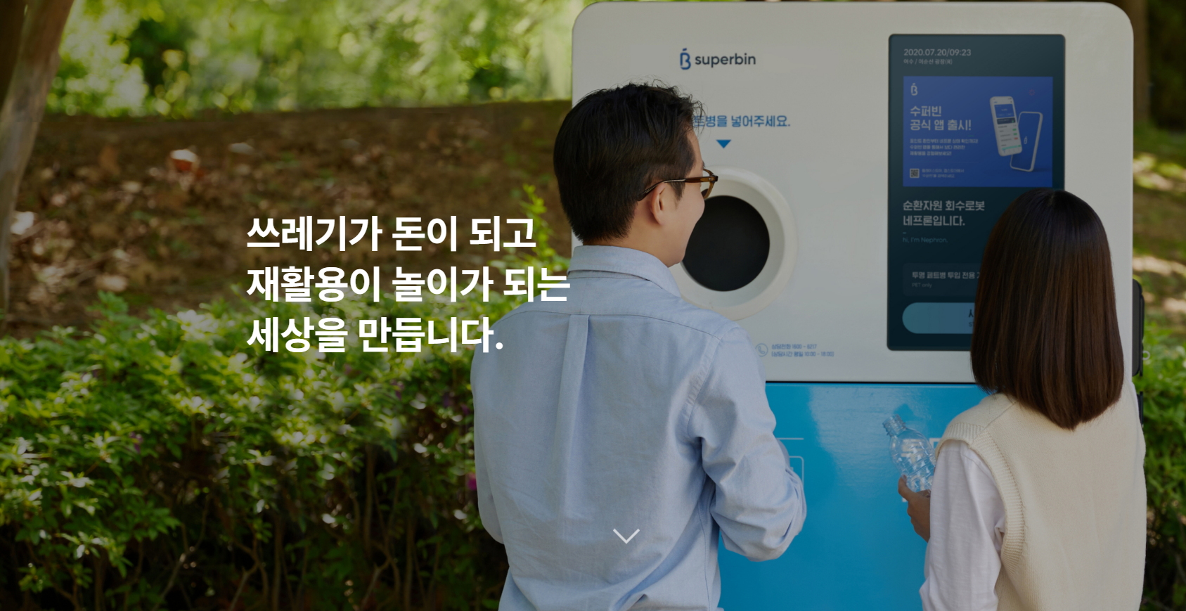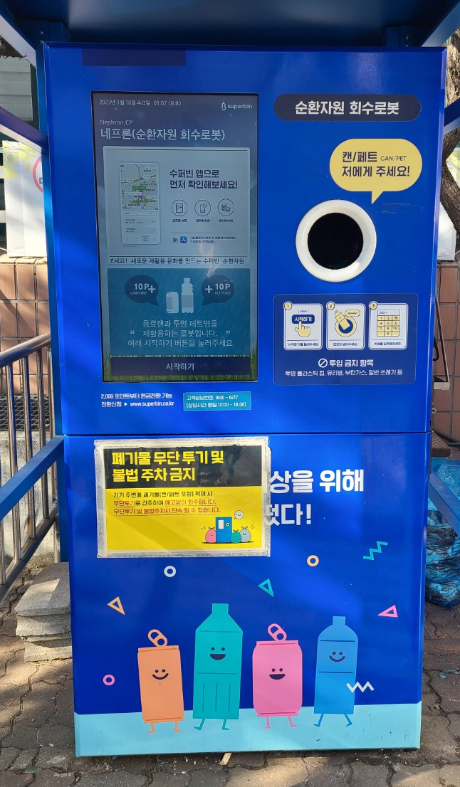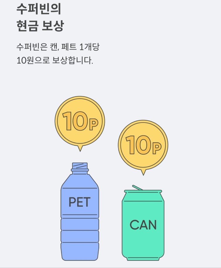 슈퍼빈은 페트병이나 캔을 모아서 자원을 순환시켜 페트병이나 캔과 교환하는 네프론이라는 기계입니다. 하나한 조각 10나는 원을 반환하는 시스템에 대해 이야기하고 있습니다..