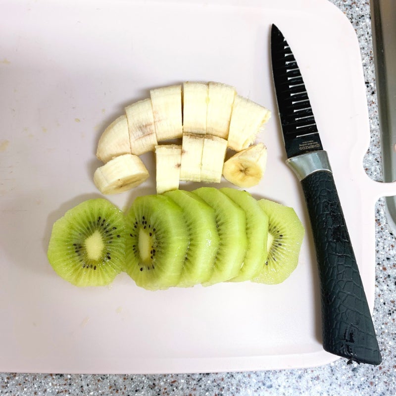 우선 #키위바나나주스 를 만드는 첫 과정은 껍질을 벗기고 알맞게 썰기 시작합니다. 필수 사항. 위는 오렌지의 2배, 비타민 E의 6배, 바나나의 5배의 비타민 C를 함유하고 있는 영양가 높은 과일입니다. 가끔은 함께 준비해요… ㅡ 네이버 지식백과 참고 ㅡ