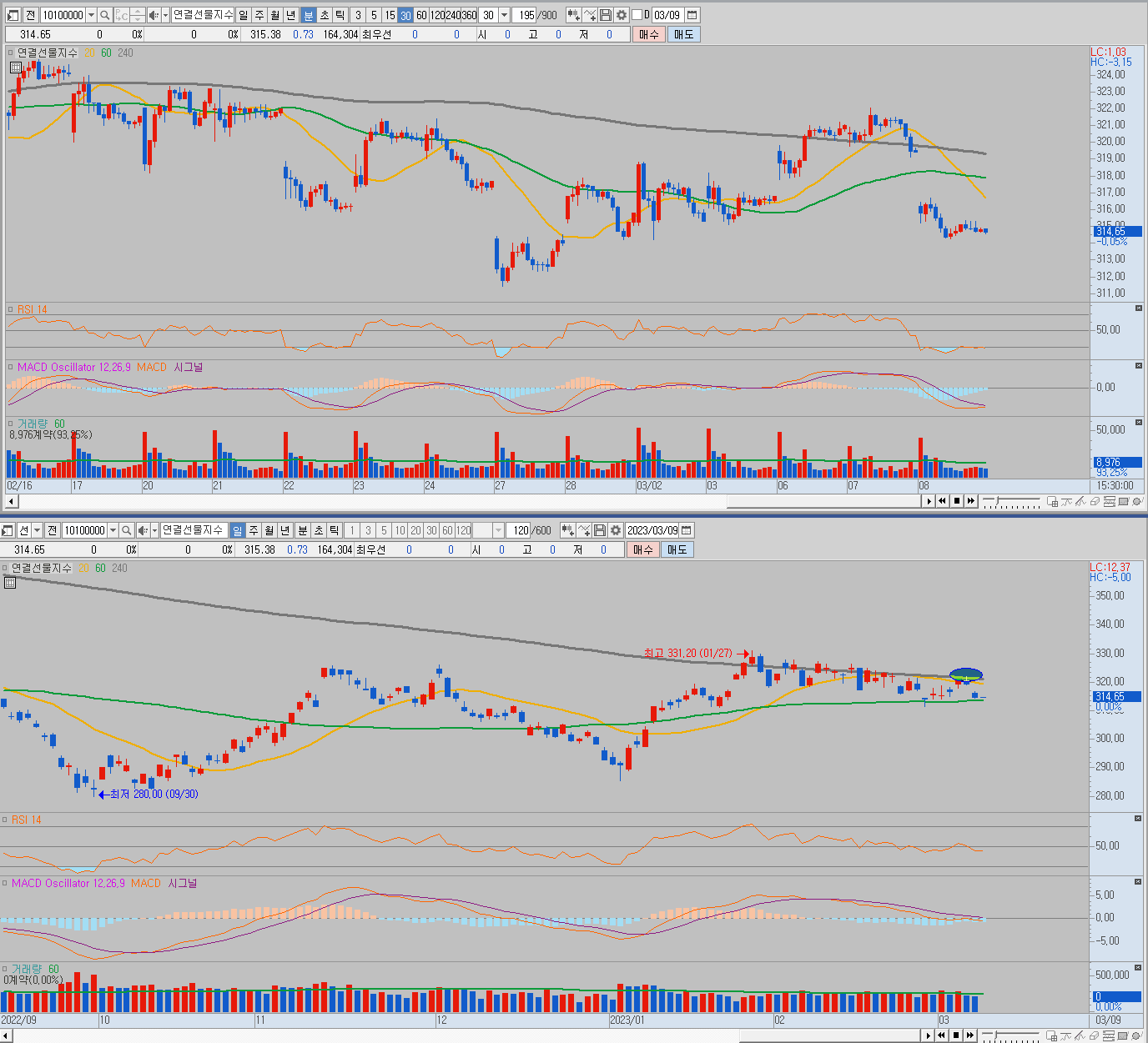2023년 3월 8일 현재 상황… 만기 하루 앞둔… 만기 지수 승부… 지수는 어떤 모습일까…
